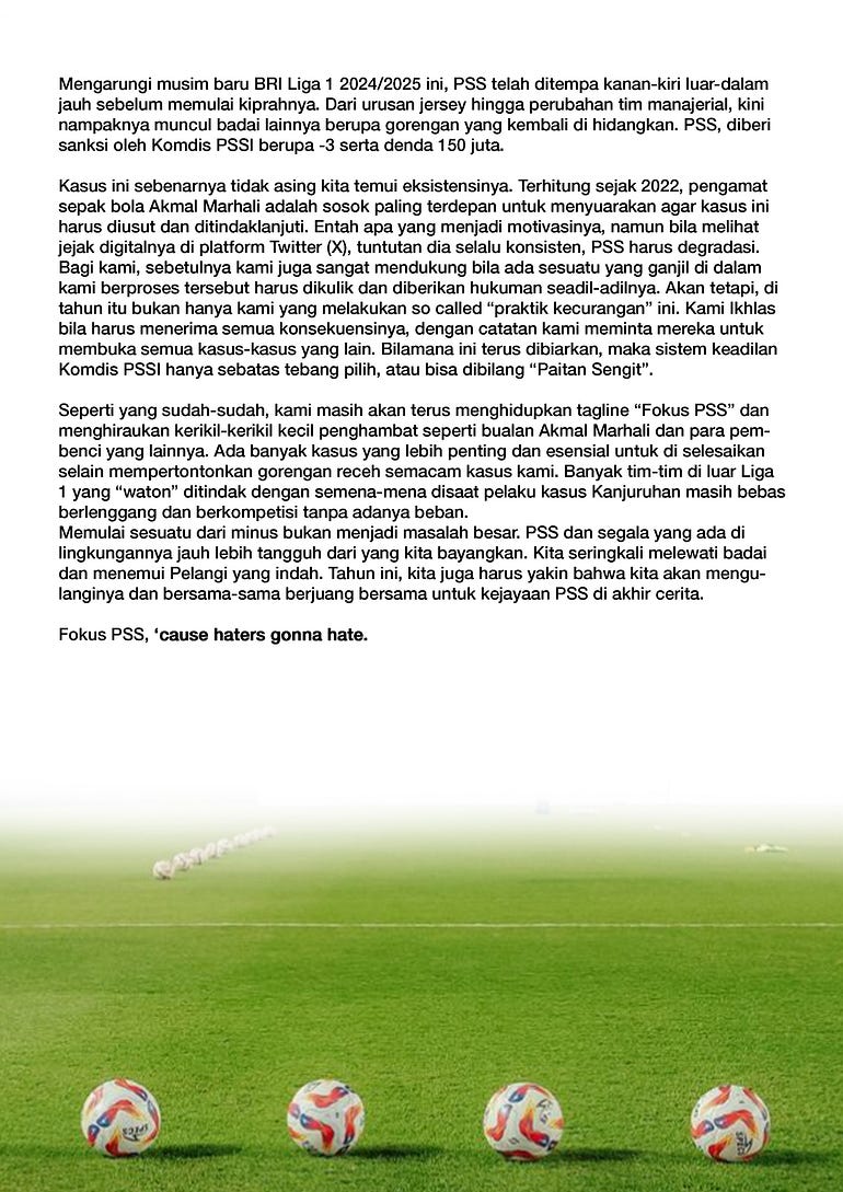 Rangkuman paruh musim pertama PSS Sleman dalam bentuk catatan sederhana.